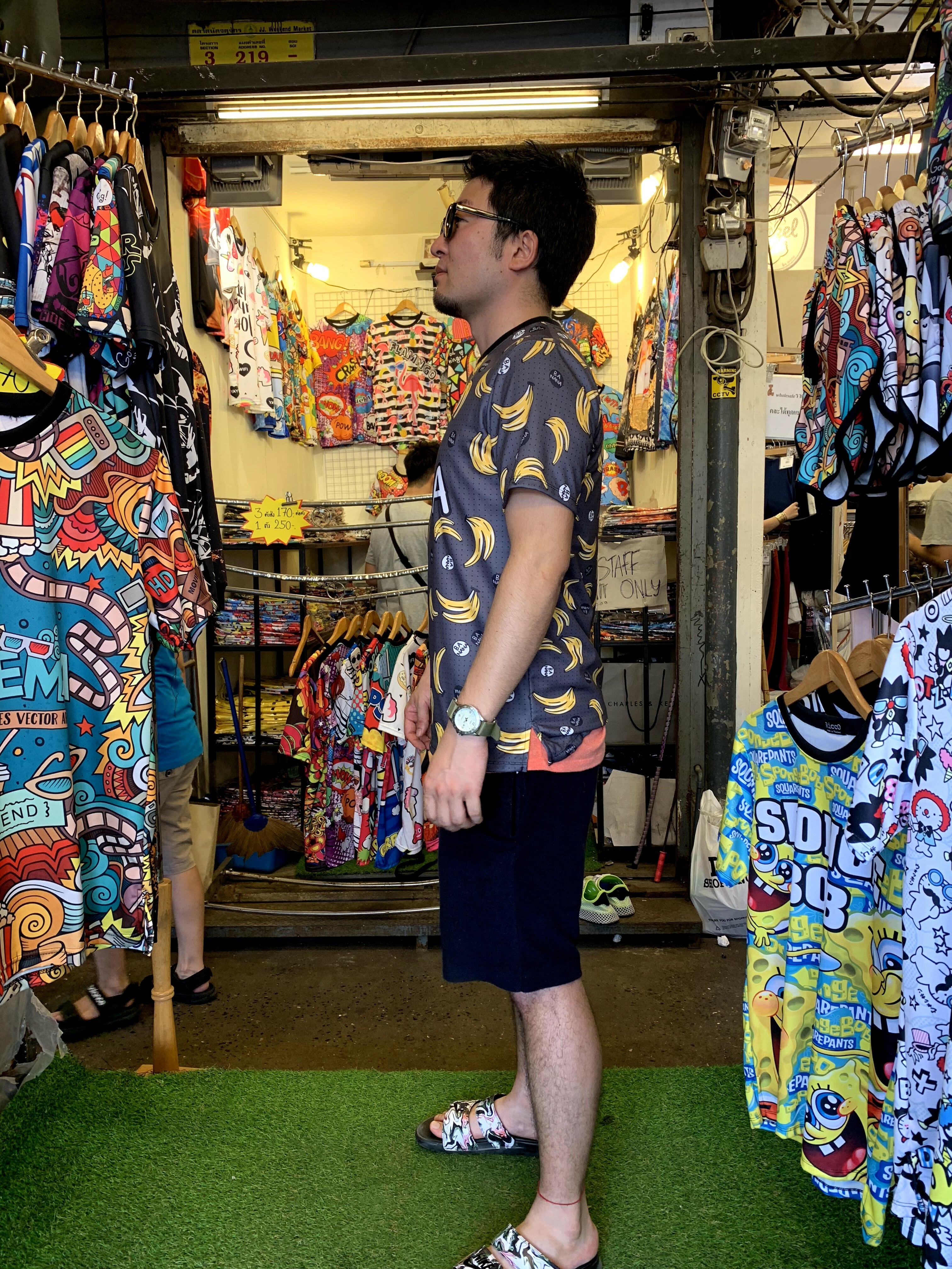 派手なTシャツ【バナナ】ラインです。 モデルは、173cm 75kgです。 なお、サイズはワンサイズのみとなります事ご了承下さいませ。